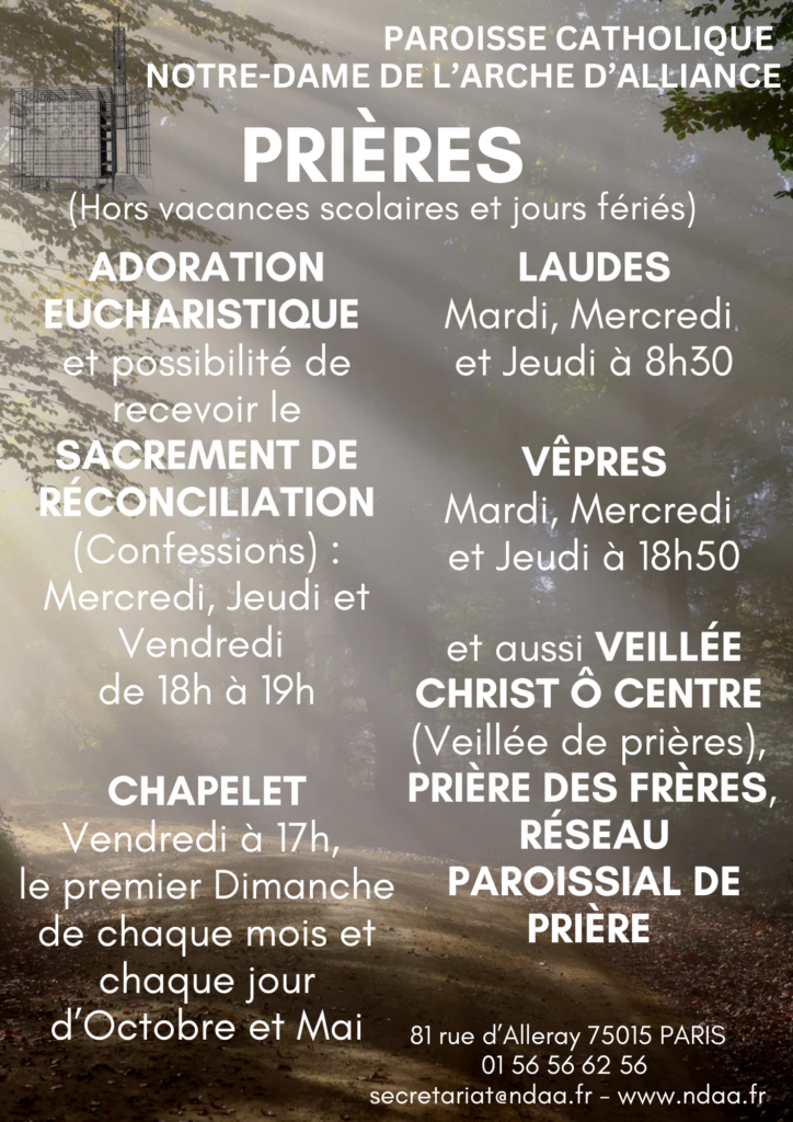 Venez prier et adorer le Seigneur lors de veillées de prière quelques mercredis dans l’année à 20h.